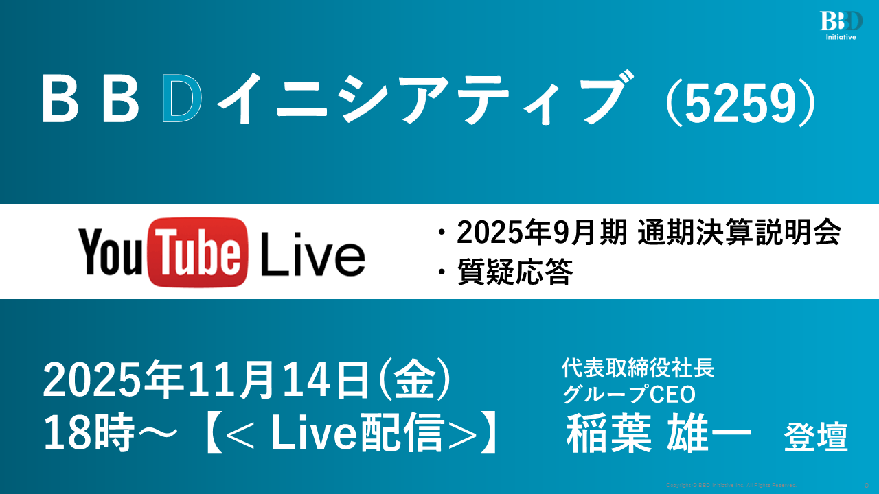 2025年11月14日(金)18時~ 2025年9月期 通期決算説明会をLiveストリーミング開催!!